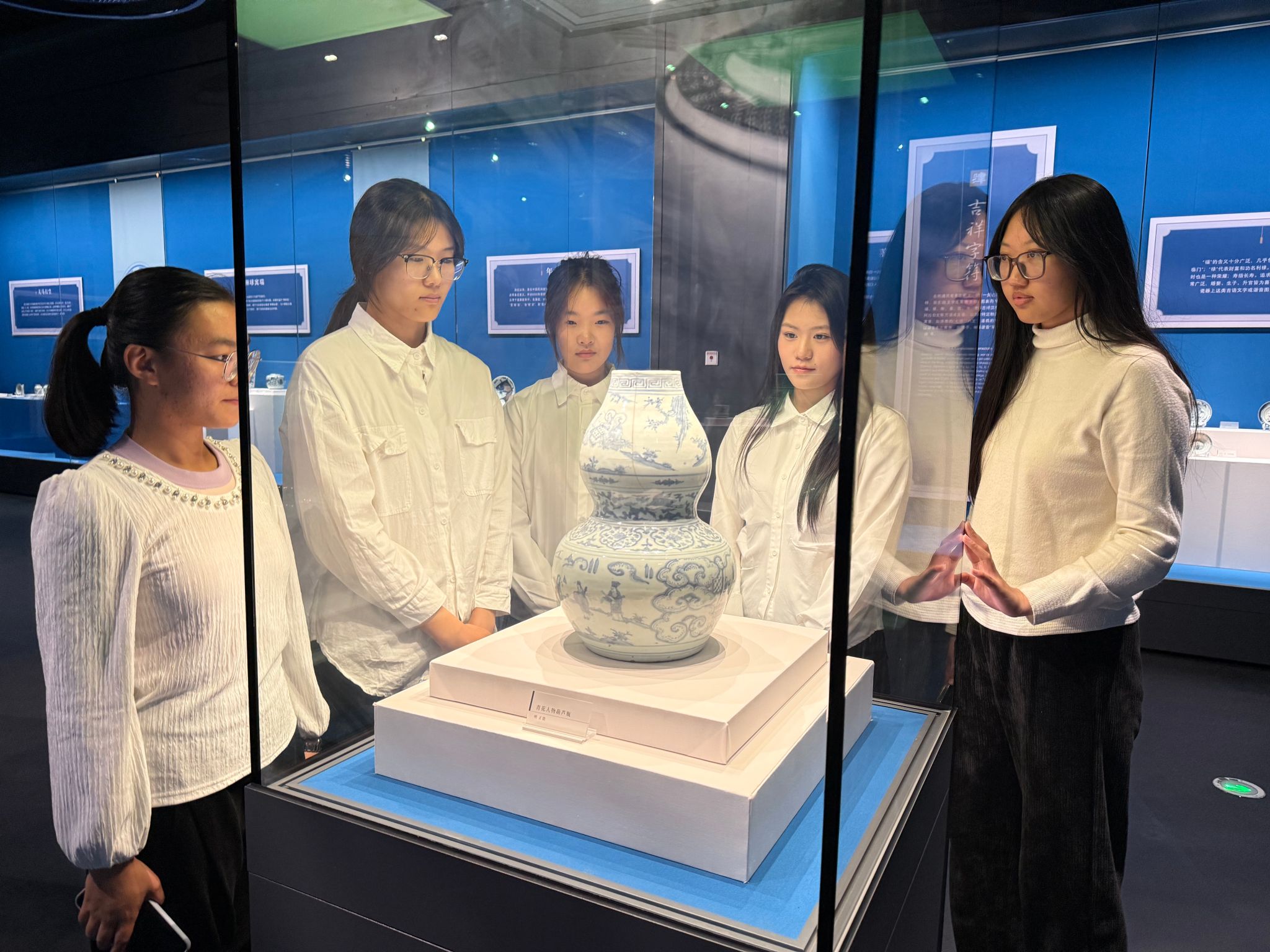 此外,同学们还在红色展馆瞻仰了带有岁月痕迹的革命文物,在瓷器展区欣赏了青花葫芦瓶的精湛工艺,于红色精神与传统文化的交相辉映中,进一步坚定了传承文脉、报效祖国的信念。