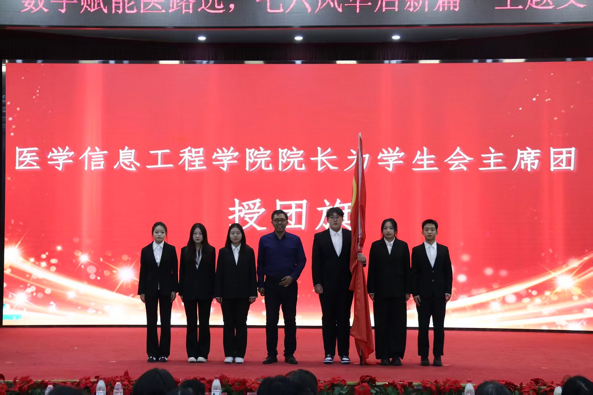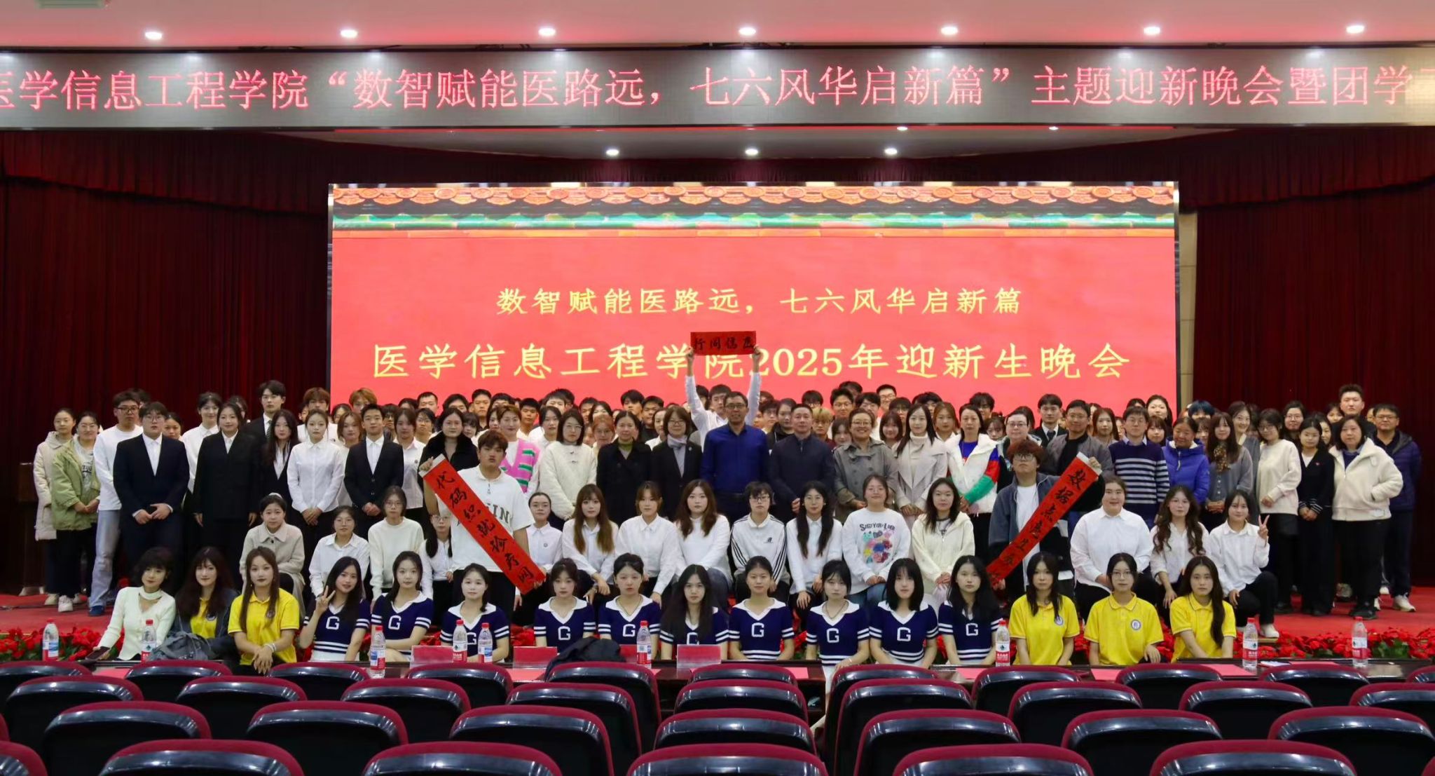 于图书馆六楼学术报告厅成功举办“数智赋能医路远,七六风华启新篇”主题迎新生晚会暨团学干部聘任仪式。本次活动既传递出学院“数智+医学”的复合型人才培养理念,更以青春欢聚凝聚奋进共识,为新生融入校园、共筑集体向心力筑牢坚实基础。